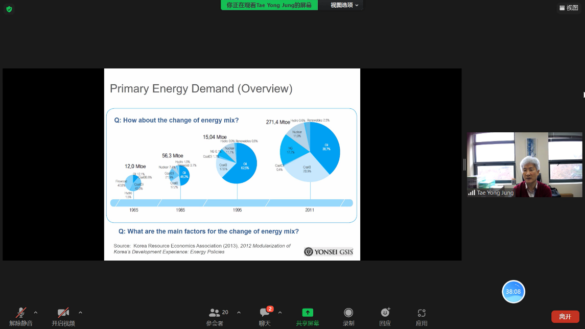 In his lecture, Prof. Jung first introduced the changing trend of Korea's energy structure and pointed out the characteristics of Korea's increasing dependence on energy imports; then Prof. Jung introduced the relationship between Korea's energy development and economy; and finally introduced Korea's policy on nuclear power generation.