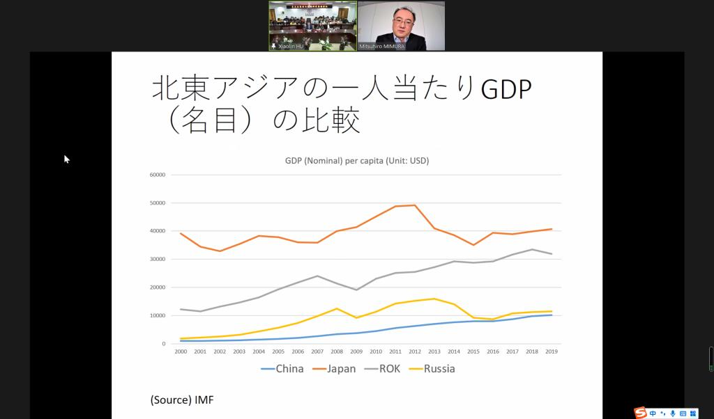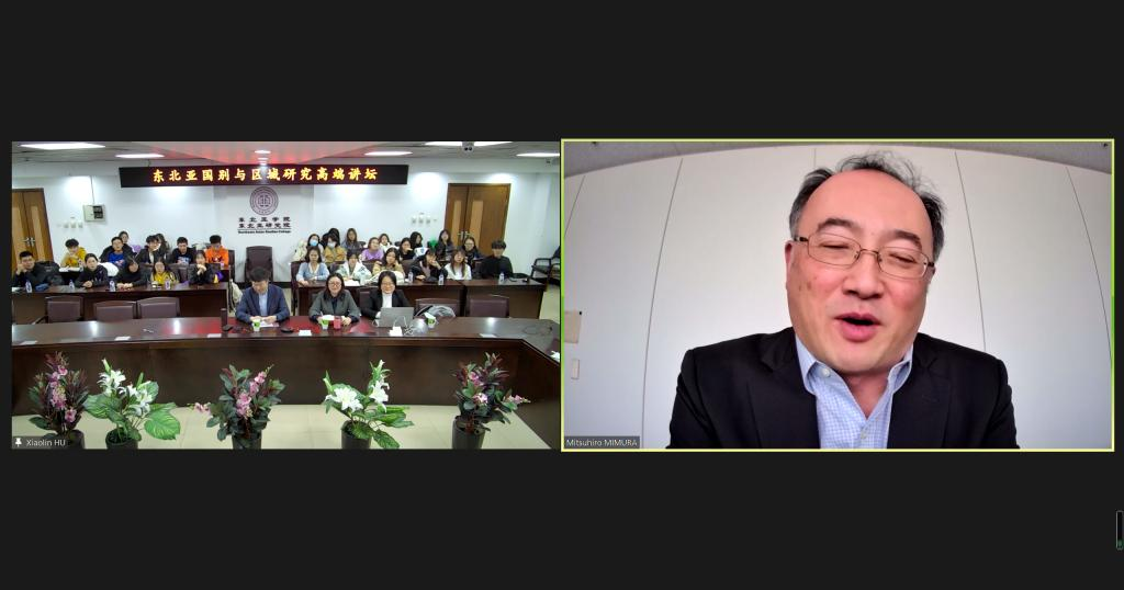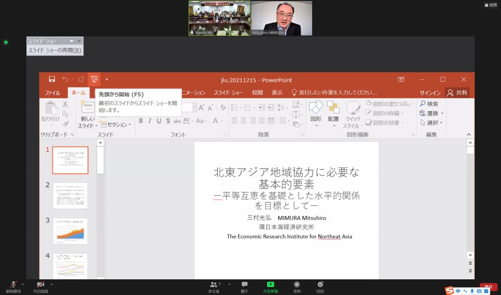 On December 15th, 2021, Professor MIMURA MITSUHIRO, President of Japan’s Association of Northeast Asia Regional Studies and Senior Research Fellow of the Economic Research Institute for Northeast Asia (ERINA), gave a keynote speech on The Essential Elements of Regional Cooperation in Northeast Asia Aimed at Lateral Relations Based on Equality and Mutual Benefit, at the invitation of the Northeast Asian Research Center of Jilin University, the Northeast Asian Studies College of Jilin University, and the Institute of Japanese Studies of Jilin University. The lecture was held both online and offline. Wang Yanjun, Vice Dean of the Northeast Asian Studies College of Jilin University, addressed and presided over the lecture and served as an interpreter. Some faculty, undergraduates and postgraduates of the college participated in the event.