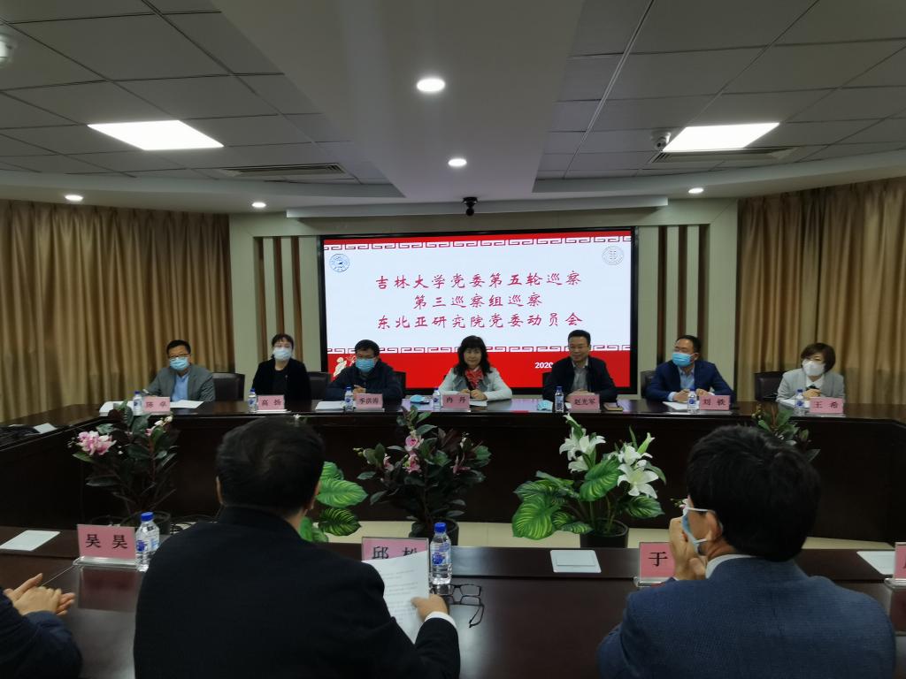 根据学校党委关于巡察工作的统一部署,2020年5月8日9时30分,学校党委第三巡察组巡察东北亚研究院党委工作动员会在东荣大厦404会议室召开。学校巡察工作领导小组成员冉丹、党委第三巡察组组长赵光军及全体成员、学院领导班子全体成员,近三年退出管理岗位的班子成员,党委委员、纪委委员,学院学术委员会主任、教学委员会主任,各研究所所长、副所长,各支部书记,教职工代表等参加了会议。会议由院党委书记邱松主持。
