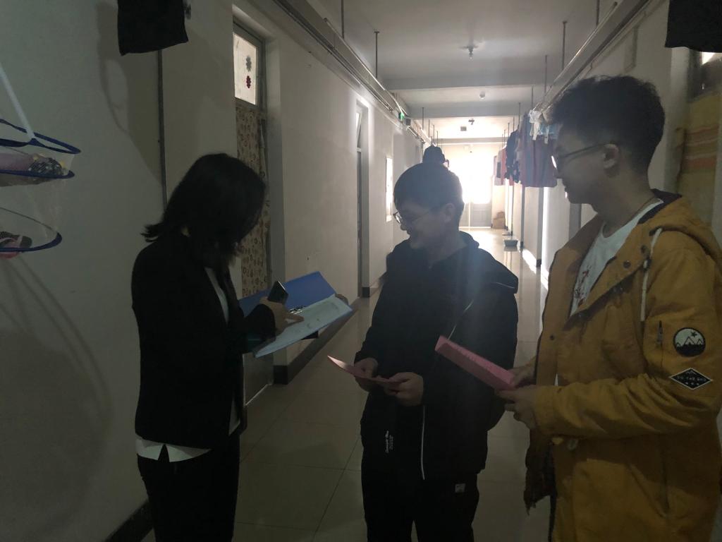 扫黑除恶在行动》宣传单,向同学们介绍了“全国扫黑除恶专项斗争”活动的意义和目的,分析了同学们身边可能出现的黑恶势力,提醒同学们要提高警惕同时鼓励同学们要敢于揭发举报身边的黑恶势力,为创造和谐校园贡献自己的一份力量。同时还进行了春季寝室消防安全检查,重点排查寝室安全隐患及违章电器的使用情况,并告知同学们春季天干物燥是火灾频发季节,不使用大功率电器,不私拉电线、乱接电源,提升消防安全意识,防止火灾的发生。