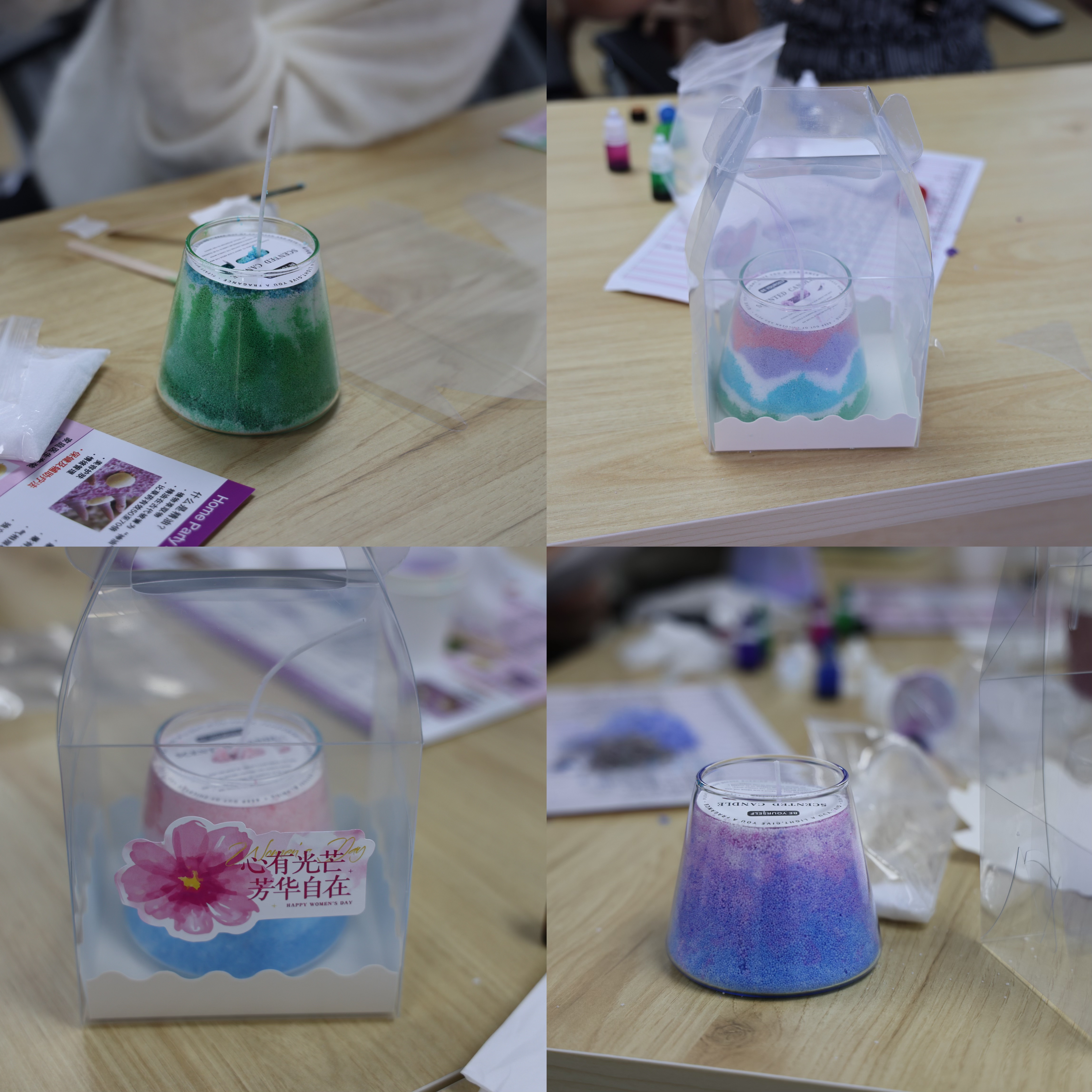 在第115个“三八”国际妇女节来临之际,组织开展了“巾帼追梦新征程,暖心巧手绽芳华”沙画香薰蜡制作活动。
