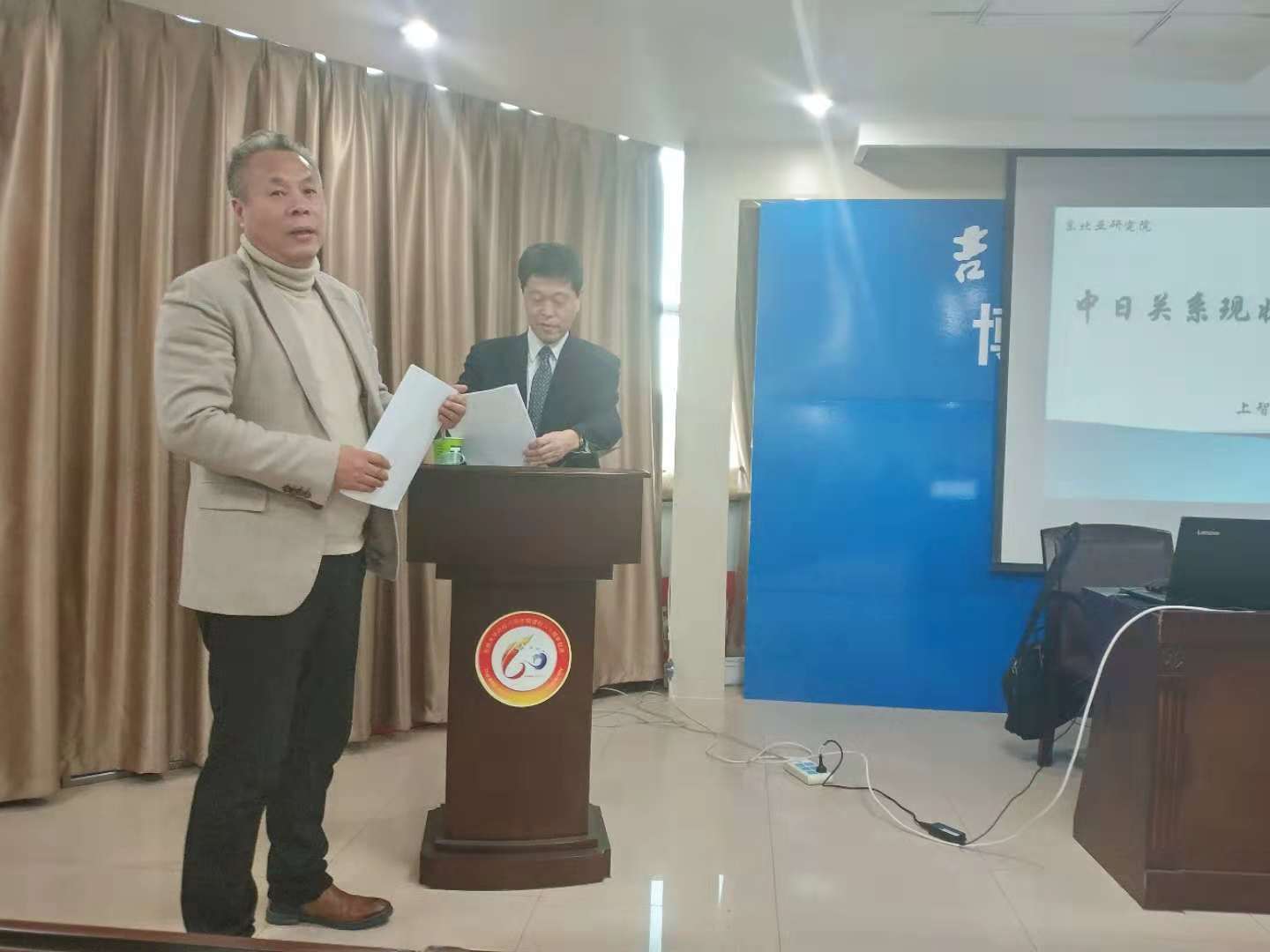 ,并与东北亚研究院院长于潇教授,副院长王彦军举行会谈。德地秀士先生为东北亚研究院国际政治所的师生举办了题为中日关系现状与未来的学术报告。报告由国际政治研究所所长巴殿君教授主持,沈海涛教授担任现场翻译。国际政治所的高科教授,张玉国副教授,崔志宏副教授,徐博副教授出席了讲座。在讲座中德地秀士先生就特朗普时期的日美同盟,日本的海洋政策等问题发表了看法,认为中日可以在多个领域进行积极有效的合作,促进东北亚地区的安全合作。讲座后德地秀士先生还回答了国际政治研究所研究生们有关日本政治与外交的相关问题,讲座受到了师生一致的好评,对于h动漫