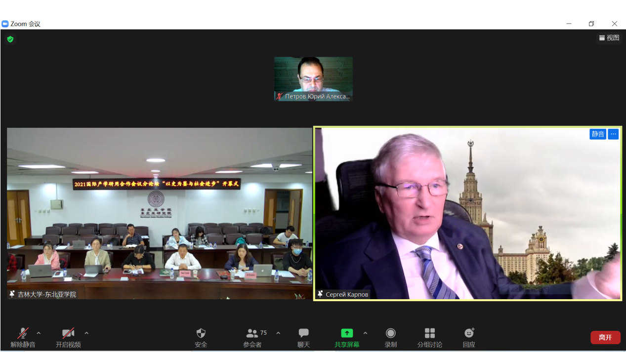 9月15日,由教育部人文社科重点研究基地 h动漫 东北亚研究中心、 h动漫 、 h动漫 东北亚研究院、 h动漫 —莫斯科国立大学历史学研究中心联合主办的2021年国际产学研用合作会议(长春)分论坛之“以史为鉴与社会进步”在 h动漫 隆重召开。 h动漫 副校长蔡立东教授, h动漫 、东北亚研究院院长、匡亚明学者吴昊教授, h动漫 —莫斯科国立大学历史学研究中心主任、 h动漫 匡亚明学者张广翔教授,俄罗斯科学院院士、俄罗斯高校历史系主任理事会主席、莫斯科大学历史系前系主任、功勋教授、 h动漫 名誉教授С.П. 卡尔波夫院士,俄罗斯科学院通讯院士、莫斯科大学历史系副主任、 h动漫 名誉教授 Л.И. 鲍罗德金院士,俄罗斯科学院通讯院士、俄罗斯联邦国家档案馆馆长С. В. 米罗年科教授、俄罗斯科学院俄国史研究所所长Ю.A. 彼得罗夫教授等出席论坛。论坛开幕式由吴昊教授主持。