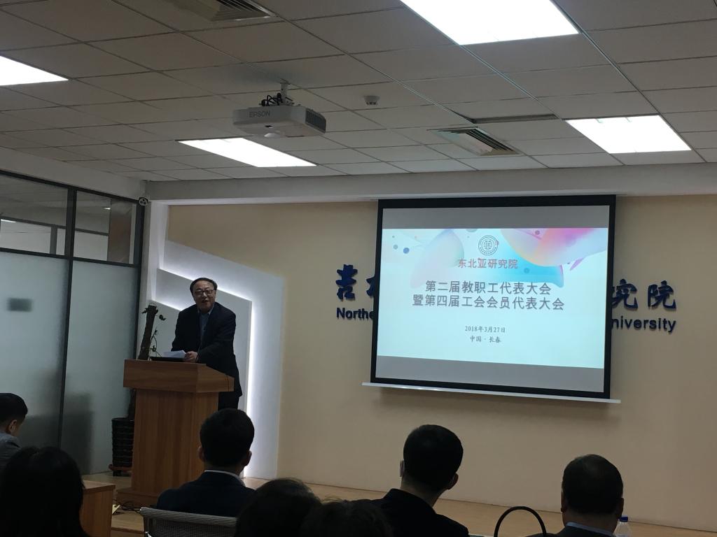 2018年3月27日上午,东北亚研究院在东荣大厦B215成功召开了东北亚研究院第二届教职工代表大会暨第四届工会会员代表大会。会议由党委书记邱松同志主持。