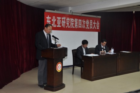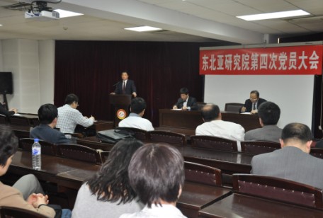 东北亚研究院第四次党员大会在东荣大厦404室隆重召开。会议由东北亚研究院院长于潇同志主持,党委书 记徐辉同志、副书记张剑宇同志、副院长张慧智同志、曹海波同志等53名教工党员及学生党员代表参加了本次会议。学校党委常务副书记兼副校长、哲学社会科学 资深教授王胜今同志代表学校党委出席了本次会议。