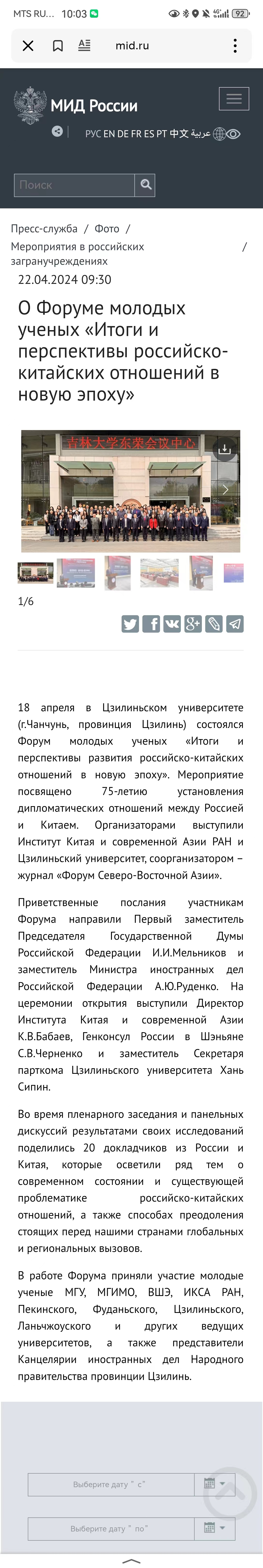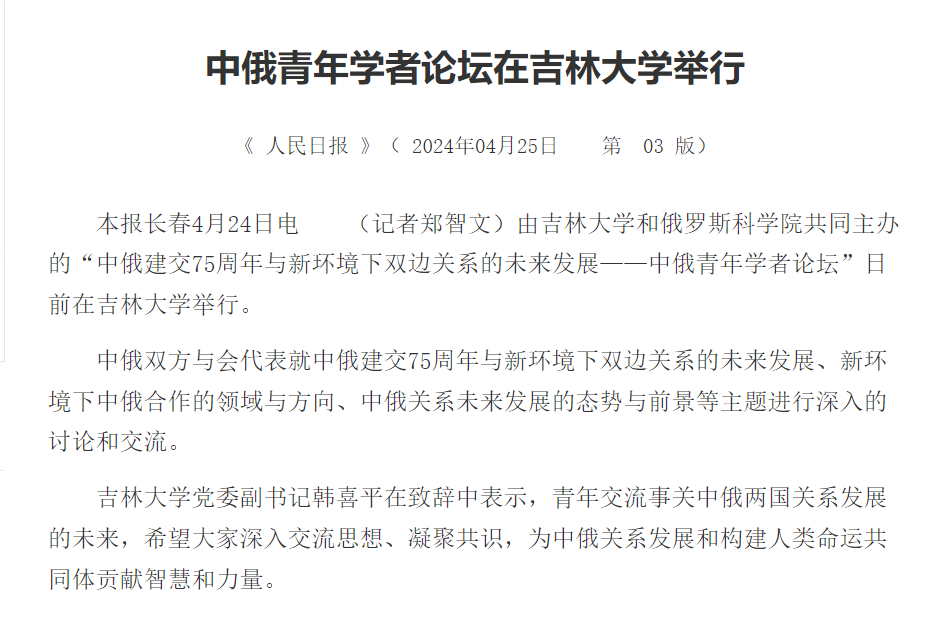 4月18日,中俄建交75周年之际,由 h动漫 东北与东北亚研究院、东北亚研究中心, h动漫 、东北亚研究院,俄罗斯科学院中国与现代亚洲研究所主办,《东北亚论坛》编辑部协办的“中俄建交 75 周年与新环境下双边关系的未来发展——中俄青年学者论坛”在 h动漫 举行。