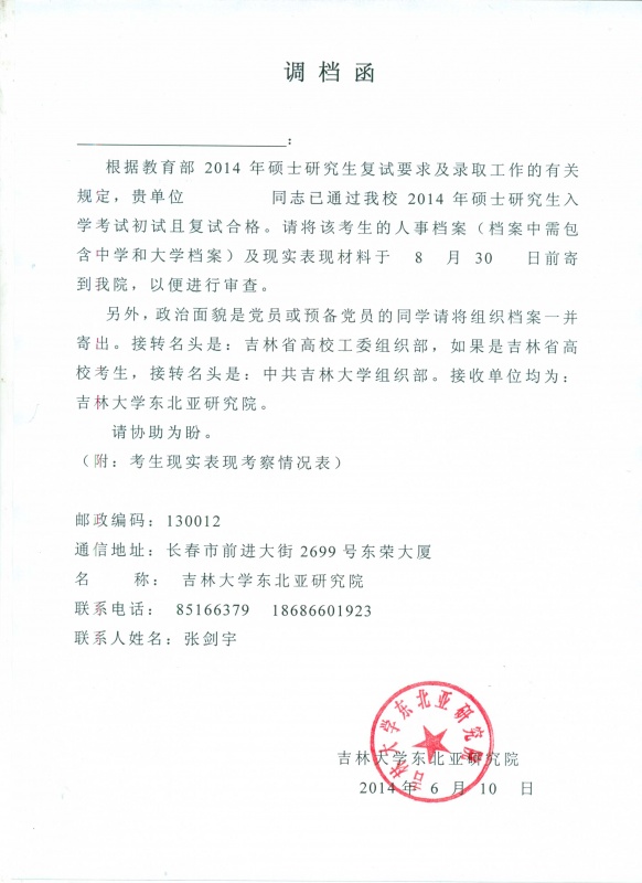 2014年入学的统招硕士研究生,请自行下载调档函(附件1)和考生现实情况考察表(附件2)后,到档案所在部门办理调档手续,并于2014年8月30日前交付到h动漫 。