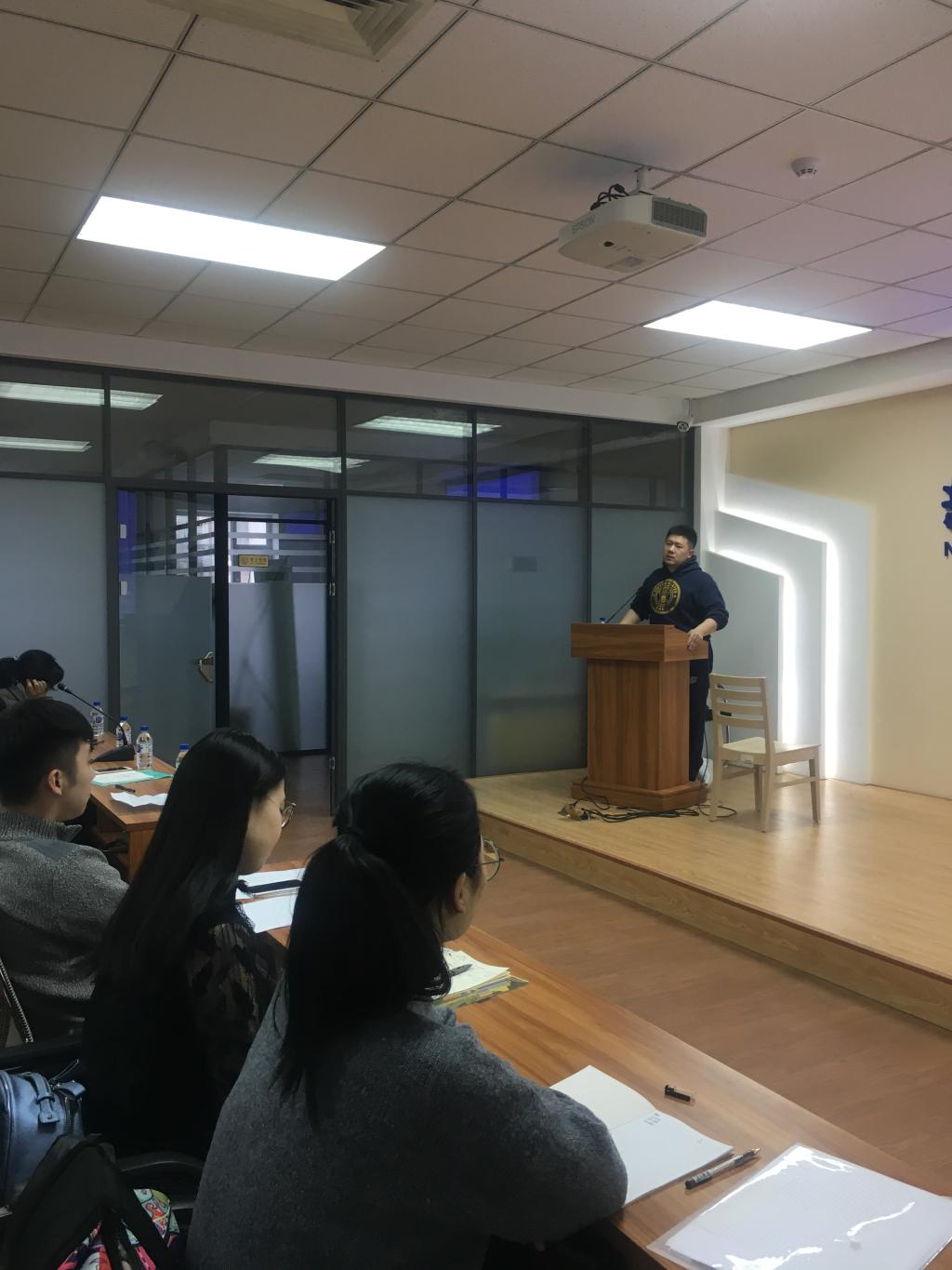 在培训中,王箫轲副教授以中韩关系发展的历史背景为切入点,介绍了韩国政治文化的起源与特点,韩国政治体制的模式与特色,并深入分析了当前韩国外交的制约因素与未来发展前景。王箫轲副教授的讲解言辞风趣,简明易懂,调理清晰,使参与本次培训的师生收获颇多。培训的最后,朝鲜韩国研究所所长张慧智教授致辞总结,并为参与本次韩国研究项目的学生布置研究任务。