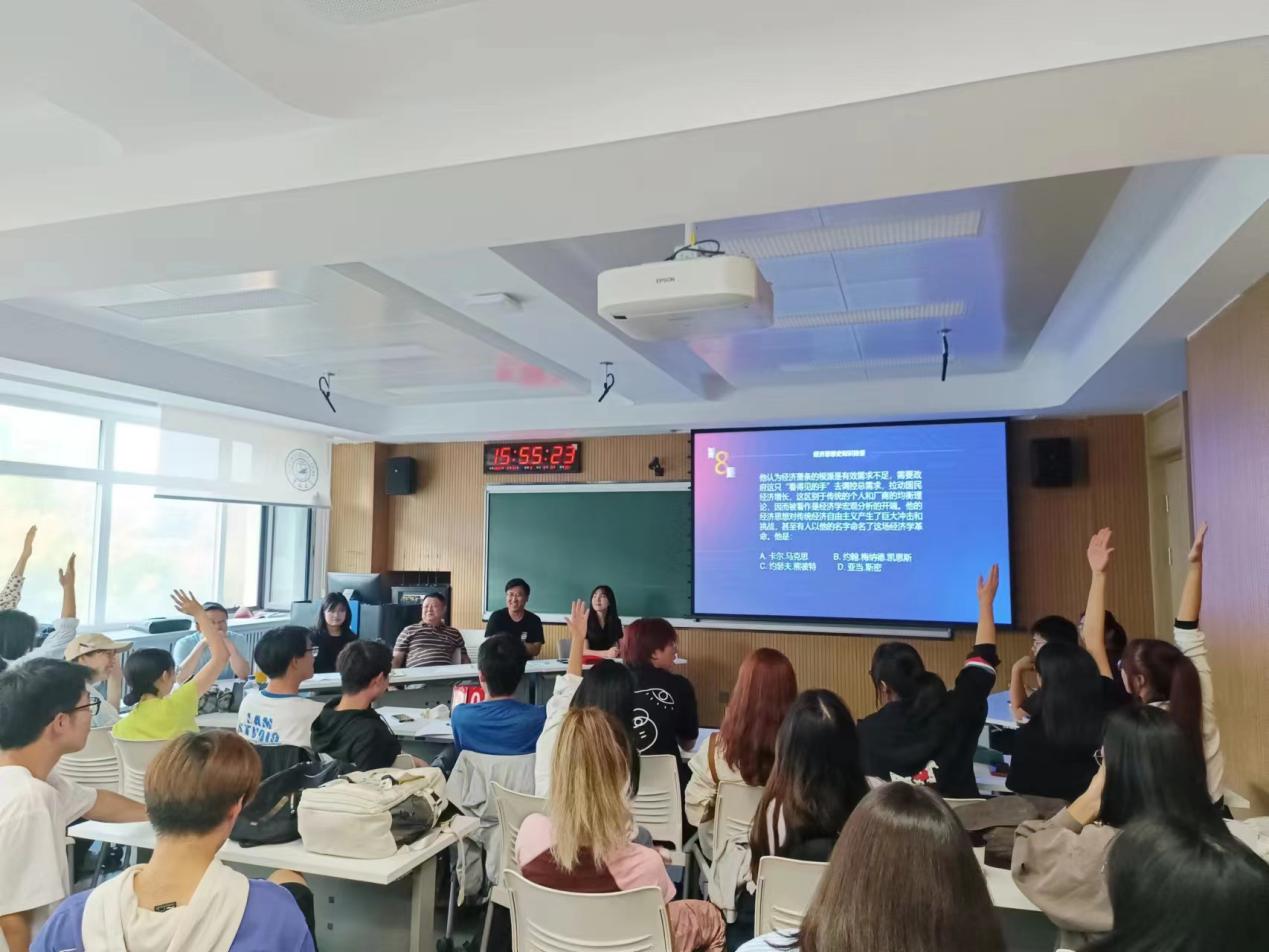 经济系组织全院经济学专业本科学生举办了一场经济学基础知识竞赛活动。经济系的李天籽老师、张建政老师、赵杨老师、郑国强老师等参加了此次活动,世界经济研究所的徐博老师也受邀作为竞赛评委,经济系周阔老师主持了竞赛活动。