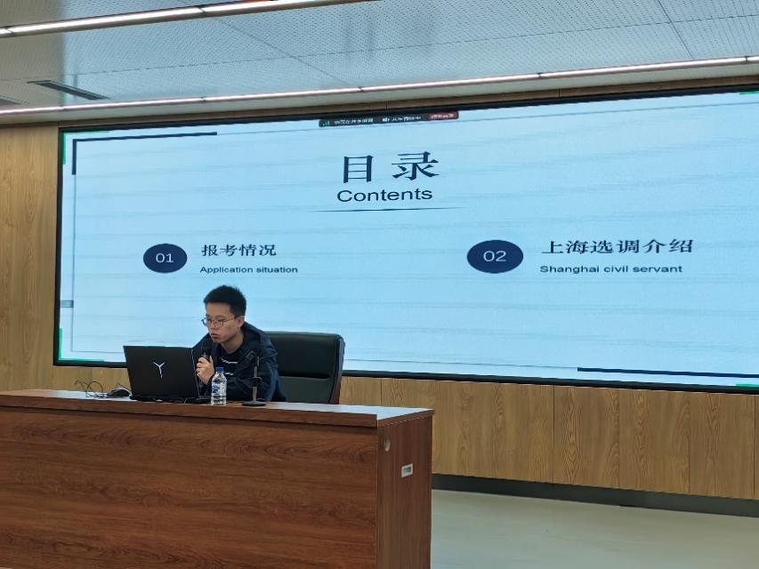 五位同学重点分享了他们的选调公考经验。来自人口、资源与环境经济学专业的王一宁同学介绍了中央选调、吉林省选调的基本内容以及他们各自区别于其他省市选调的特点;林建鑫同学详细分享了上海选调的报考时间、具体填写流程、笔试题目类型及出题特点、结构化面试中需要注意的重点难点等,并建议同学们注重日常阅历积累与内在提升;段艺璇同学分享了选调考试相关信息的来源渠道并列举了自己常用的备考材料,建议同学们多加考虑报考条件和报考因素,重点介绍了备考过程和面试经;鲍泓舟同学对求职考公的信息来源渠道做了进一步补充,并鼓励同学们要更加自信、拓宽信息获取渠道、做好时间规划;王从元同学介绍了自己常用的考公信息获取渠道及备考材料,建议同学们“抓紧时间参加考试”,“不要眼高手低”,“不要妄自菲薄”,并提醒大家注意差额政审环节、平衡考公和毕业论文之间的时间分配。
