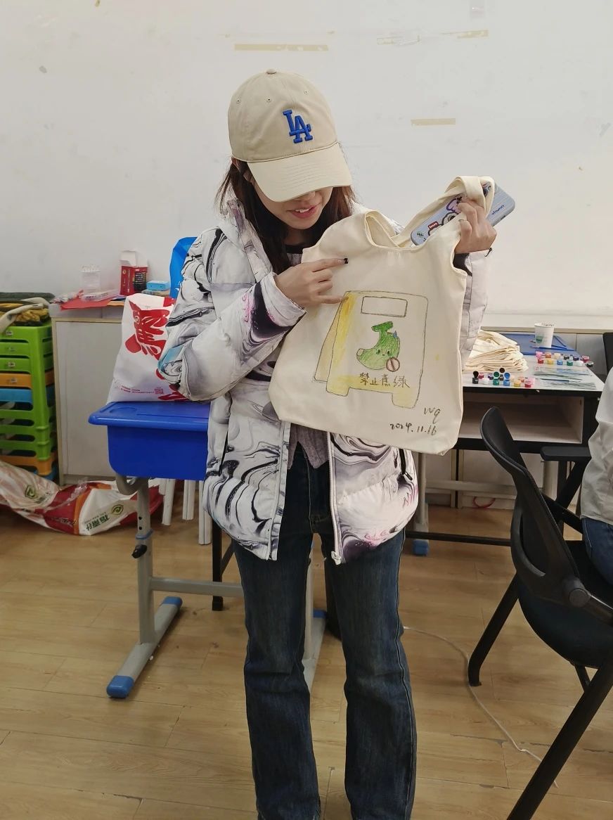 活动现场,学生们手持画笔,在空白的帆布包上挥洒着自己的创意与想象。从简单的线条到复杂的图案,从鲜艳的色彩到内敛的色调,每一件作品都是创作者内心世界的映射,展现了他们对生活的感悟与思考。通过这种方式引导参与者释放日常学习和生活中的压力、增强自我认知,培养独立思考和创造的能力。