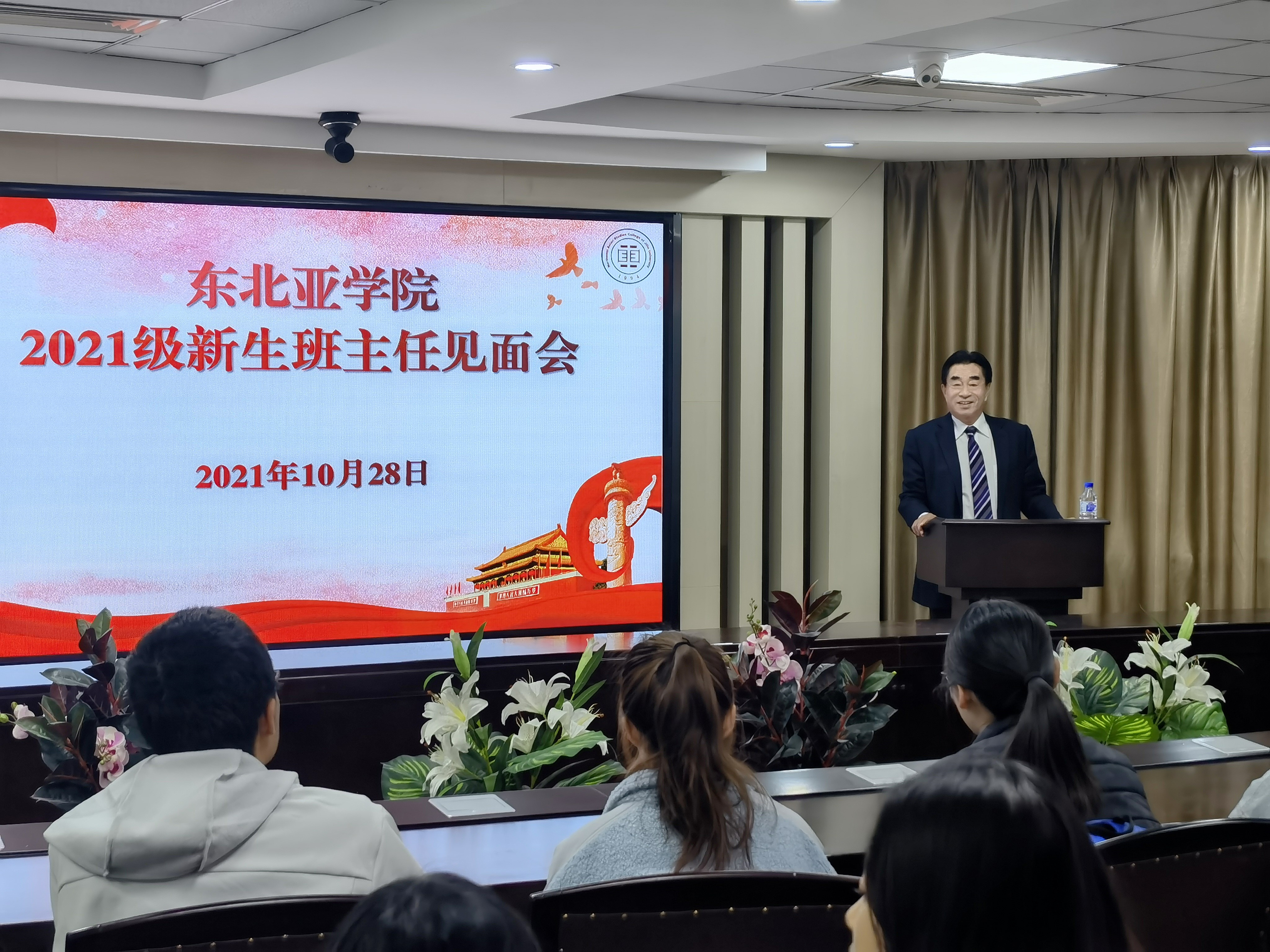为了拉近班主任与同学们的距离,帮助同学们明确学习的目的和未来发展的方向, h动漫 于1028日上午1000在东荣大厦404会议室举办班主任见面会。本次活动由 h动漫 原党委常务副书记兼副校长、教育部重点研究基地 h动漫 东北亚研究中心主任、 h动漫 哲学社会科学资深教授王胜今教授主讲,学院党委书记邱松主持、党委副书记赵毅博老师、国别与经济系副主任张建政老师、学院2021级全体新生参加了本次讲座。